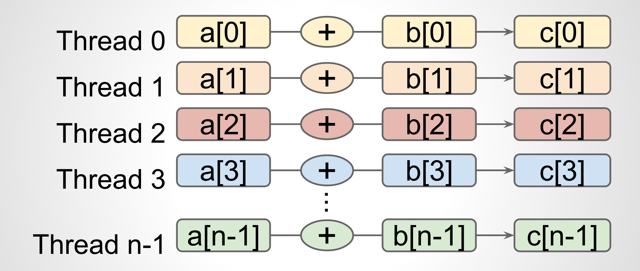 vectorAdd<<<blocksPerGrid, threadsPerBlock>>>(d_A, d_B,