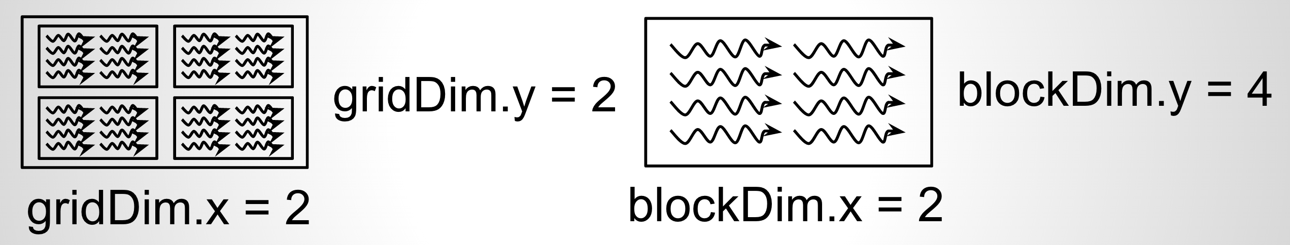 dim3 dimBlock (5); // 5 threads per block in 1D